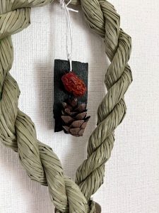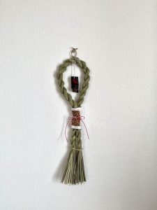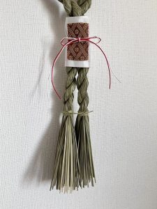 しめ縄は普通、稲で作られますがこちらは畳の材料のイグサを使います。